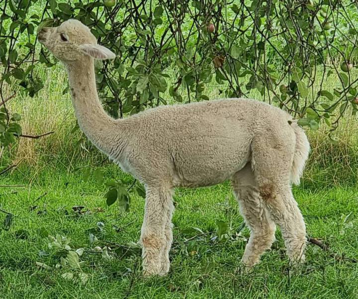 abstammend von einer der begehrtesten Zuchthengste Kanadas: Saints Alpacas La Roroque.